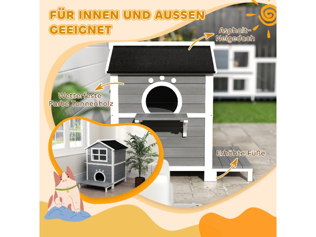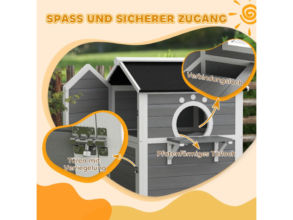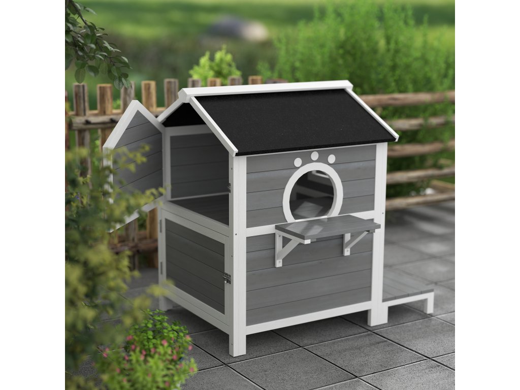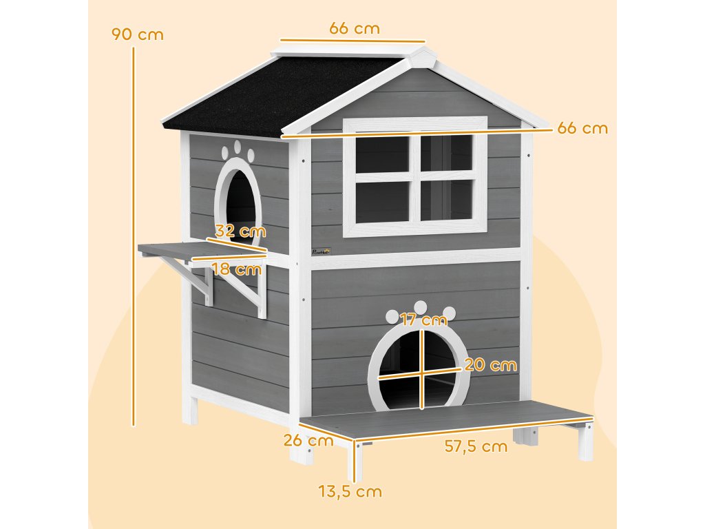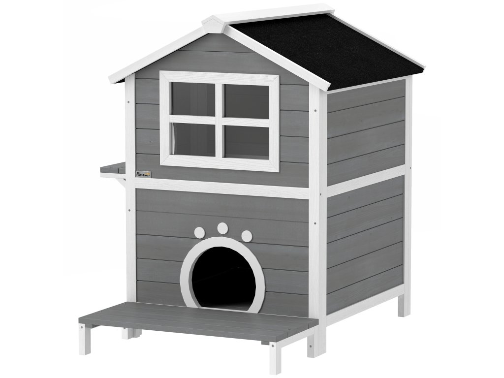 Objavte ideálne miesto pre svojho chlpatého kamaráta s domčekom pre mačky PawHut. Asfaltová strecha chráni pred dažďom a slnkom a zaručuje pohodlie za každého počasia. Dvojposchodový dizajn so spojovacím otvorom domčeka pre malé zviera nabáda k objavovaniu a relaxácii, vrátane plošiny a balkóna pre teplé dni. Perfektný pre 1-2 mačky do 5 kg.