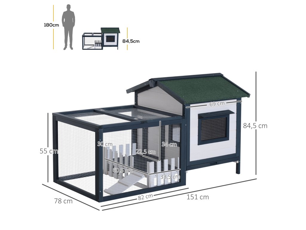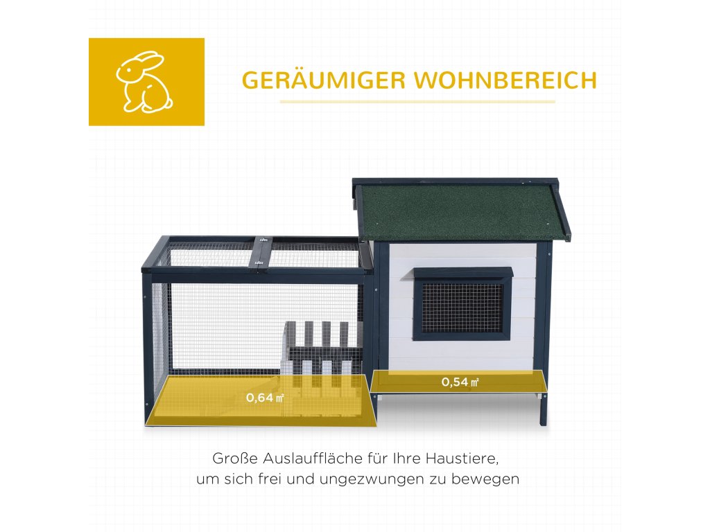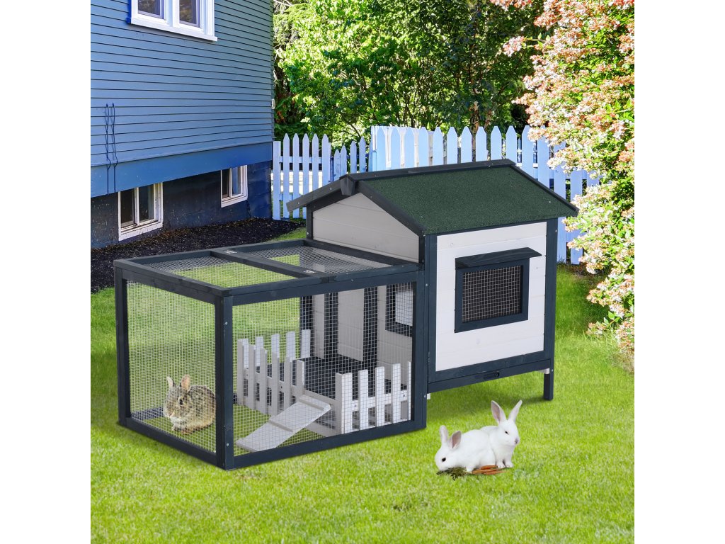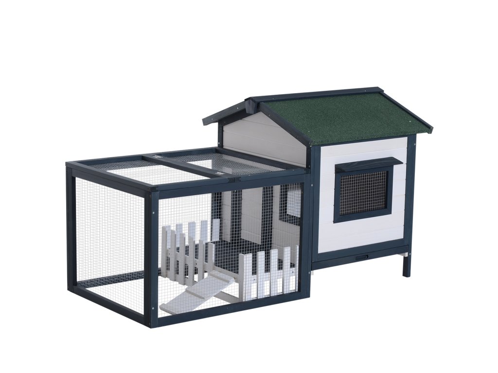 Kompaktný dizajn s búdkou a výbehom ponúka malým zvieratám dostatok priestoru na behanie, spánok a odpočinok.