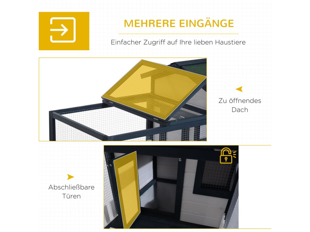 Táto vysokokvalitná králikáreň pre zakrslé králiky je ideálnym domovom pre malé zvieratá. Králikáreň je vyrobená z lakovaného dreva a má pozinkované kovové tyče. Strecha, ktorá je vybavená bitúmenovými doskami, ponúka vašim zvieratkám bezpečný a teplý úkryt aj v nepriaznivom počasí. Priestranná klietka pre králiky ponúka vašim domácim miláčikom dostatok pohybu a čerstvého vzduchu.