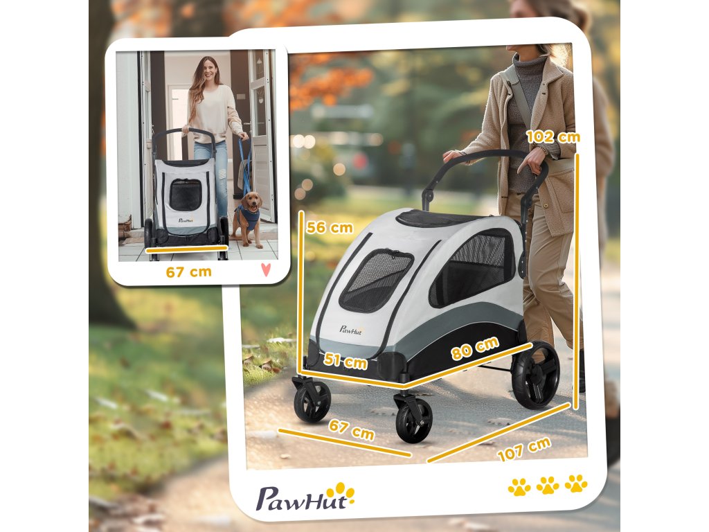 Tento vozík je ideálnym dopravným prostriedkom pre vášho psa, či už ide o prepravu k veterinárovi, výlet do prírody alebo cestovanie. Pre väčšiu bezpečnosť sa vo vozíku nachádza bezpečnostné vodítko. Zabudované okná zabezpečujú vetranie a dobrý výhľad. Predné kolesá sa dajú otáčať o 360 stupňov a zadné kolesá sú vybavené brzdami. Vozík je vhodný pre stredne veľkých psov.