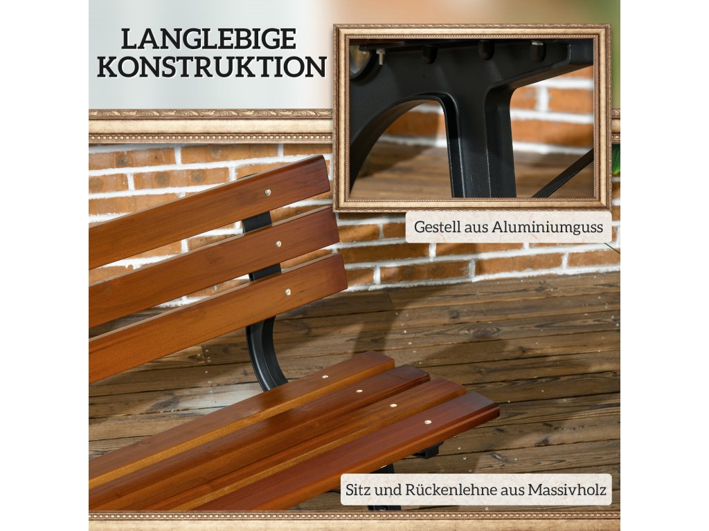 Zažite spoločenské chvíle na čerstvom vzduchu s nádychom elegancie. Záhradná lavica Outsunny ponúka nielen pohodlné sedenie, ale aj atraktívny dizajn pre vašu terasu alebo verandu. Vďaka vysokokvalitnej liatine a sedáku a operadlu z prírodného dreva je táto parková lavička dokonalým doplnkom vášho vonkajšieho priestoru.