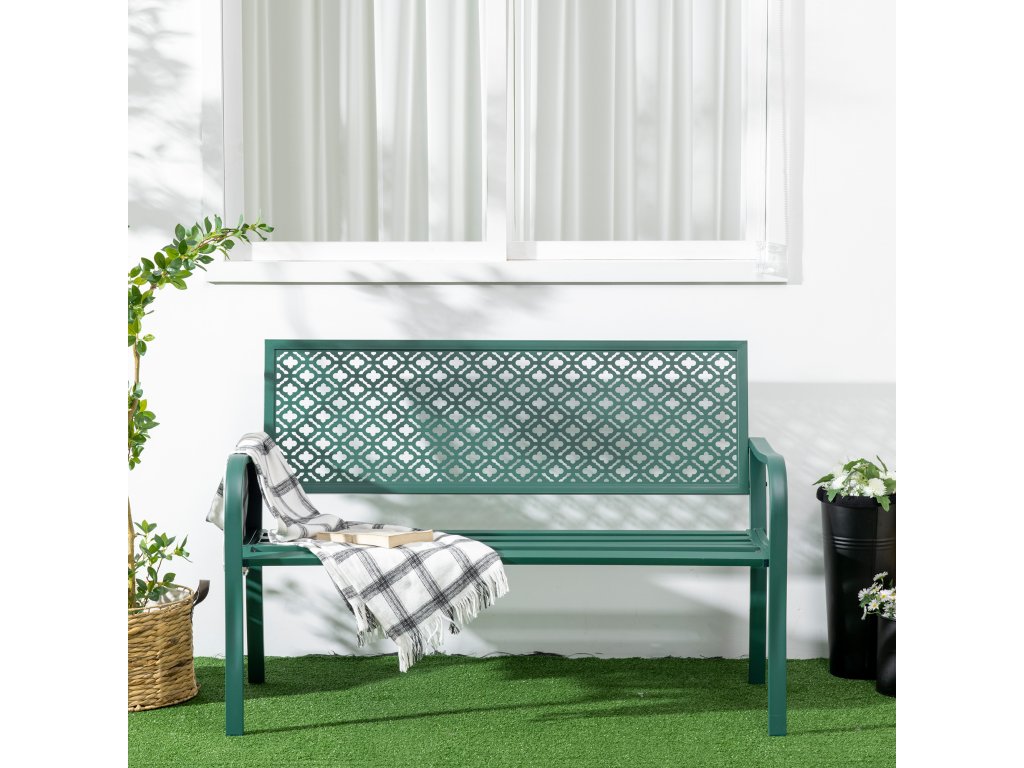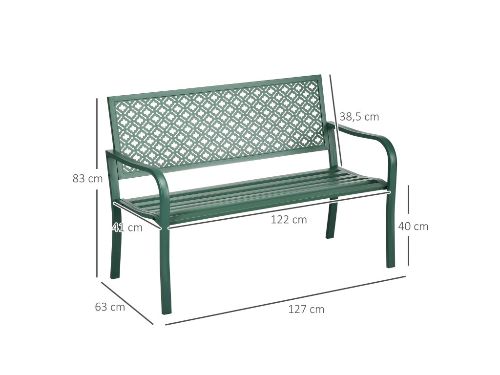 Záhradná lavička HOMCOM nosnosť 280 kg 127 x 63 x 83 cm tmavozelená