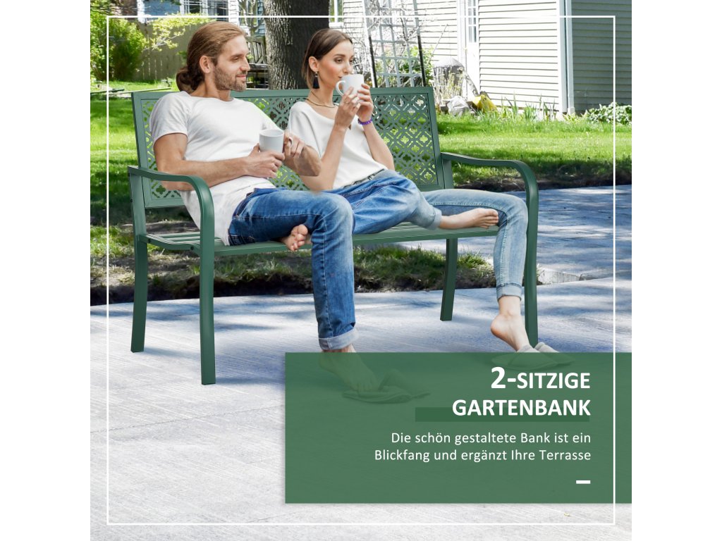 Užívajte si svoje obľúbené miesto v záhrade na tejto záhradnej lavičke od spoločnosti Outsunny. Lavička je vyrobená z ocele, je robustná, odolná voči poveternostným vplyvom a dostatočne pohodlná na to, aby ste na nej mohli tráviť hodiny oddychom na slnku. Dve opierky na ruky ponúkajú dostatok priestoru na opretie rúk a robia z balkónovej lavičky ideálne miesto pre dvoch. Dodajte svojmu vonkajšiemu priestoru nádych elegancie s touto nostalgickou záhradnou lavičkou od spoločnosti Outsunny.