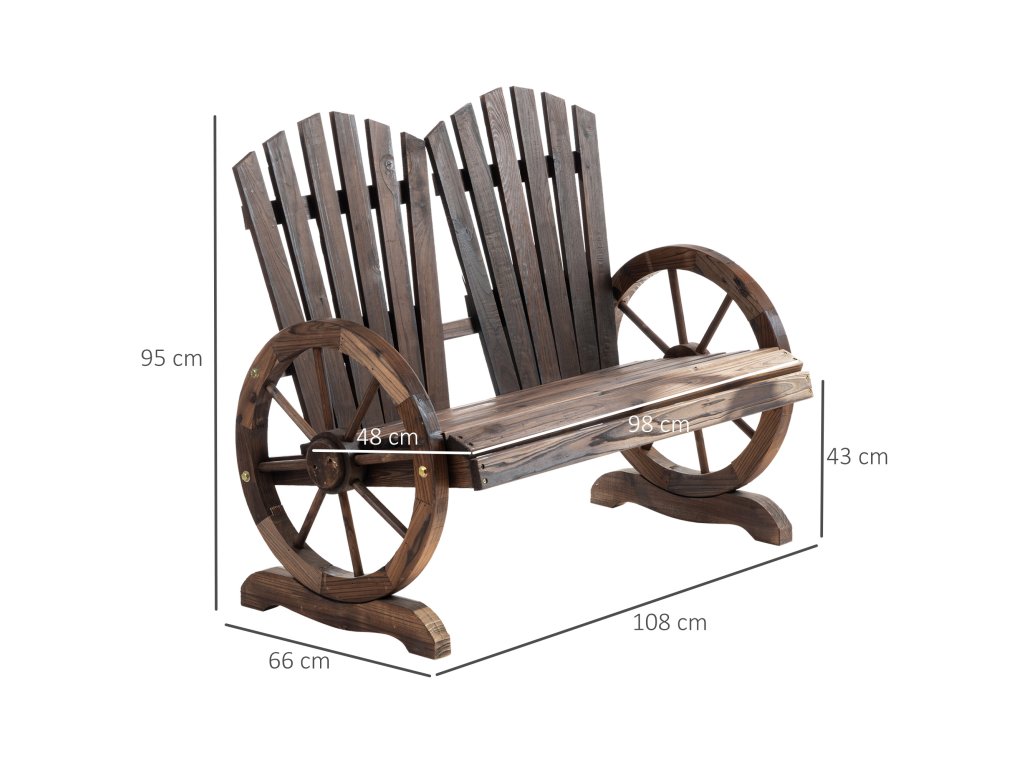 - Jedinečný dizajn: elegantná dvojmiestna lavička v rustikálnom štýle je ideálna do záhrad, na terasy a iné vonkajšie priestory a vďaka povrchovej úprave z ohoreného dreva sa lavička stane absolútnym stredobodom pozornosti