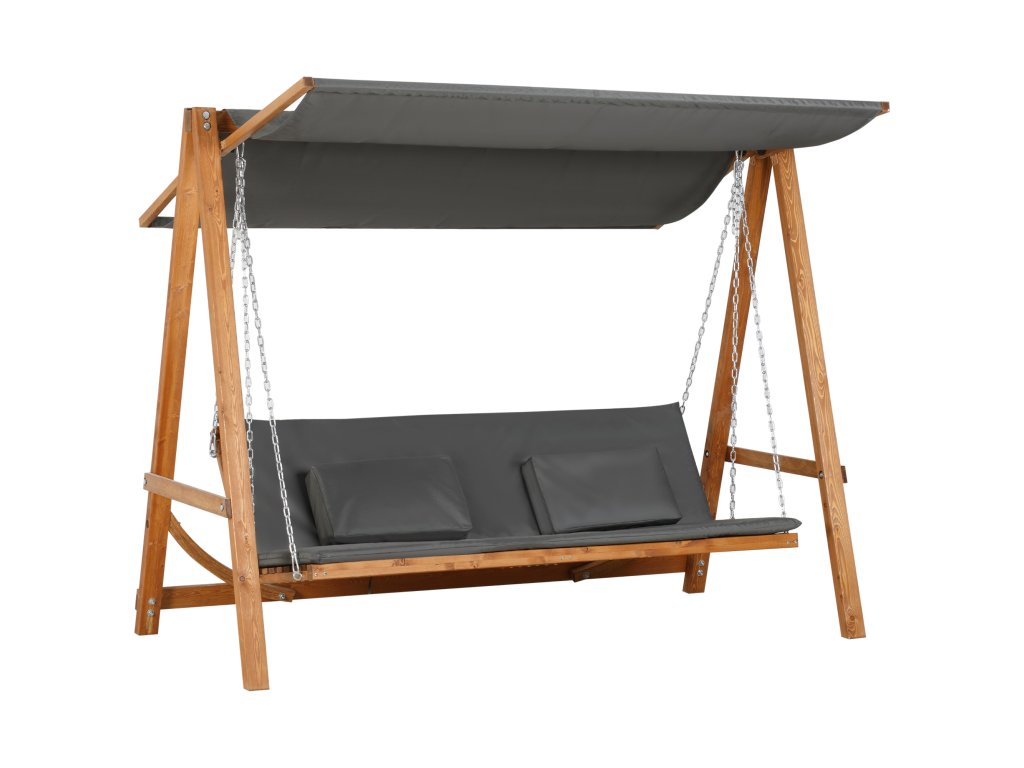 Záhradná trojmiestna hojdačka HOLLYWOOD s funkciou lôžka drevená 226 x 180 x 113 cm sivá